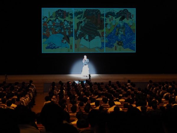 全校生徒1300人を超えるマンモス男子校…普段馴染みのない男子高校生たちに長唄をいかに聴かせるか…企画から演出に至るまで、さまざまなアイデアを出し合いつつ当日を迎えました。