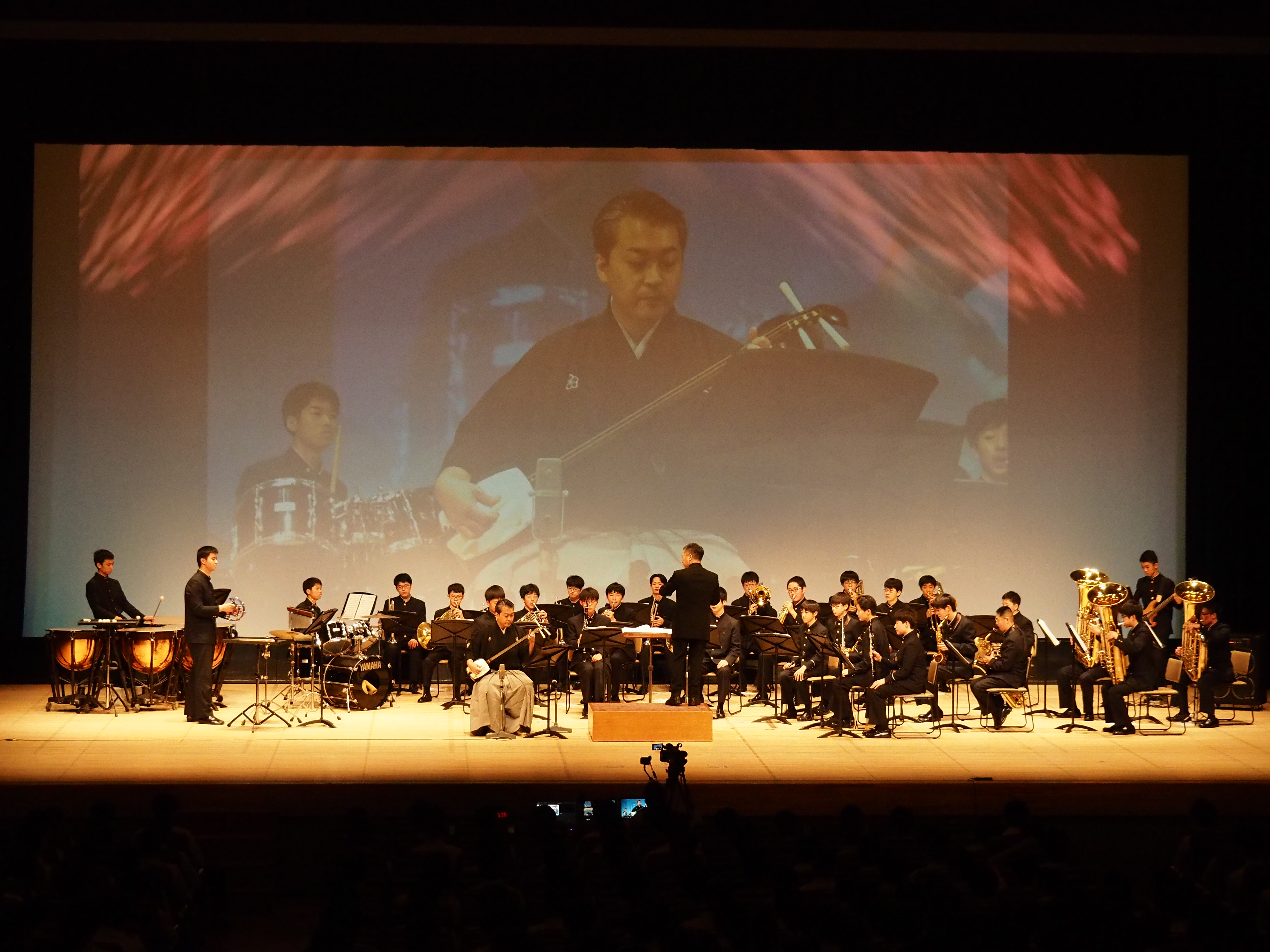 ➡これも③同様、カメラで部員の演奏する姿を追い、後方に投影